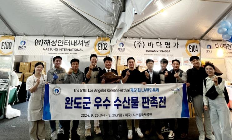 9월 25일부터 29일까지 열린 ‘제51회 LA 한인 축제’에서는 관내 기업인 ㈜바다명가, (유)해성인터내셔널, 완도바다영어조합법인, 다시마전복수산영어조합법인 등과 함께 판촉 행사를 진행했다.