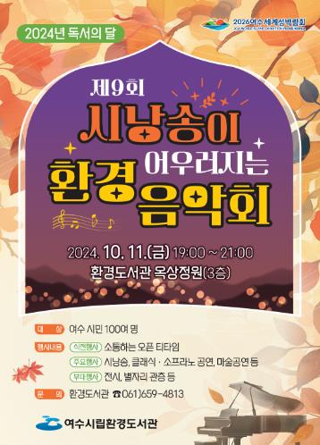 ![]() 여수시립환경도서관, 11일 가을밤 ‘환경음악회’ 개최 |