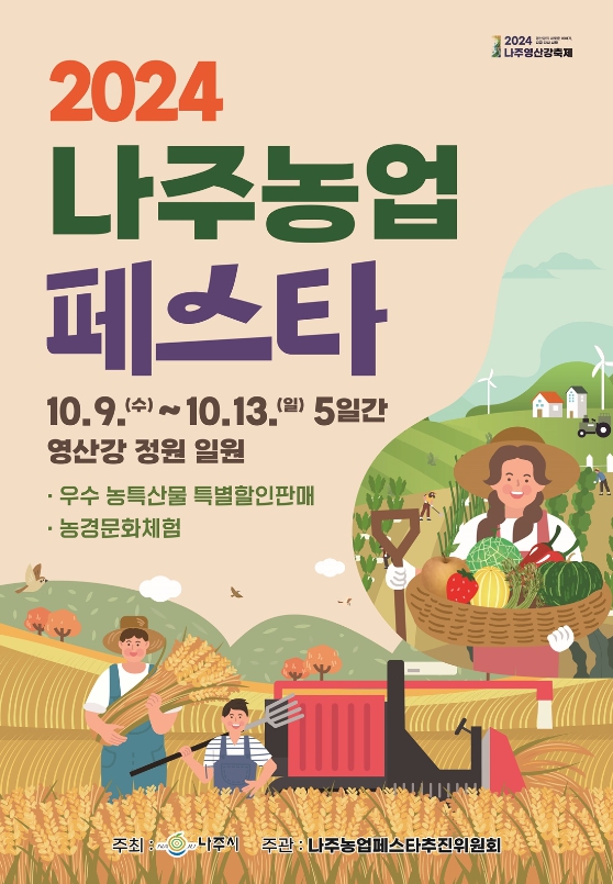2024 나주영산강축제와 통합 추진되는 나주농업페스타는 우수 농특산물 판촉 홍보, 나주농업 전시 홍보, 체험 등 다채로운 프로그램을 선보인다.