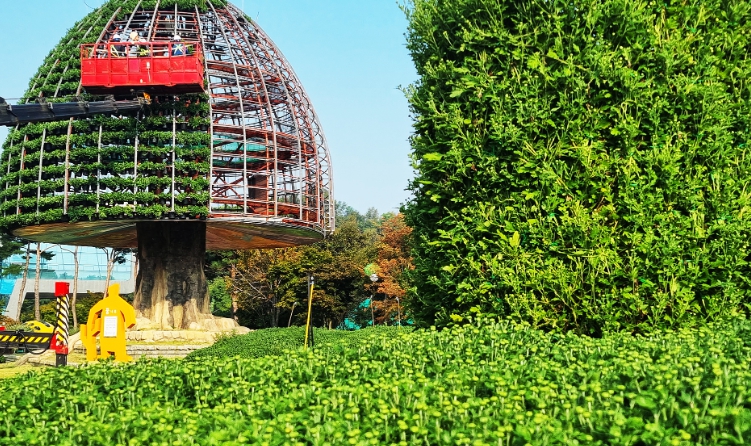 군은 함평엑스포공원 주제관 앞에 꿈나무와 희망나무 조형물에 현애국화 화분 4천 본을 투입해 웅장한 꽃탑을 조성하며 대전 준비에 한창이다.