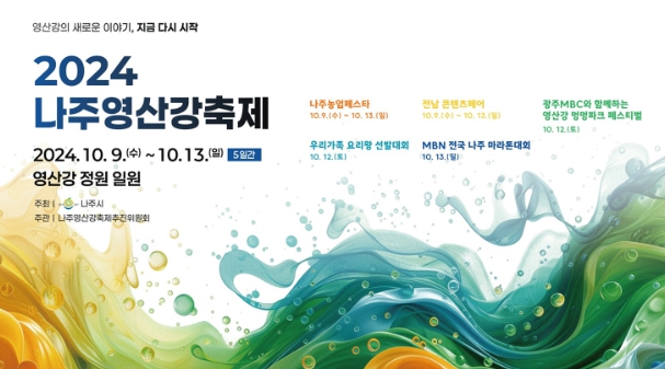 나주시(시장 윤병태)는 9일 오후 6시부터 영산강 정원 축제 주무대서 ‘영산강의 새로운 이야기, 지금 다시 시작’이라는 주제로 ‘2024 나주영산강축제’ 개막식을 연다고 8일 밝혔다.