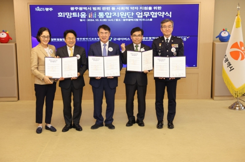 광주시교육청, 광주시, 광주경찰청, 사회복지법인 굿네이버스는 8일 시청 비즈니스룸에서 ‘범죄피해 학생과 가정의 일상회복과 건강한 성장’을 지원하기 위한 업무협약을 체결했다.