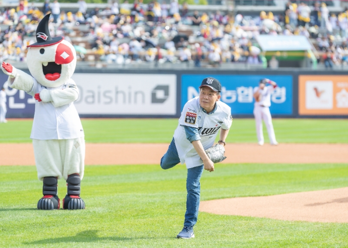 ![]() 이재준 수원특례시장이 시구를 하고 있다. |