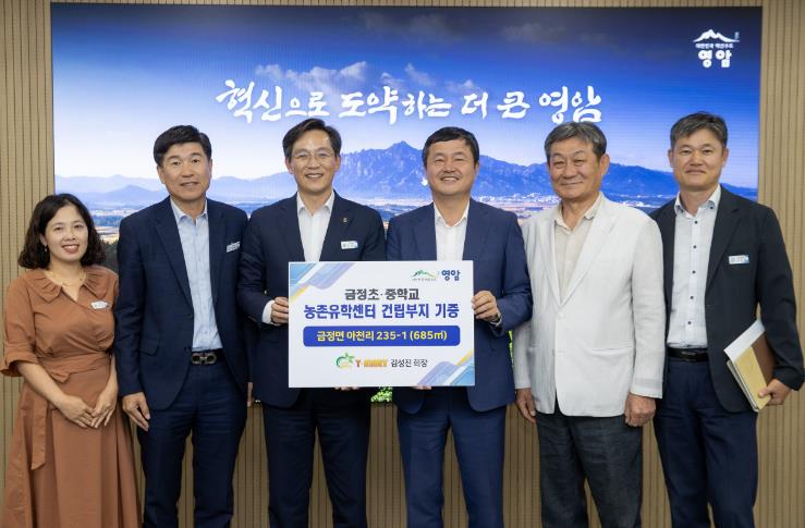 이번에 기증된 부지는 금정면 아천리의 685㎡로, 영암군은 2025년도 수변구역 특별지원사업으로 추진 중인 연면적 330㎡의 농촌유학센터를 여기에 건립할 예정이다.