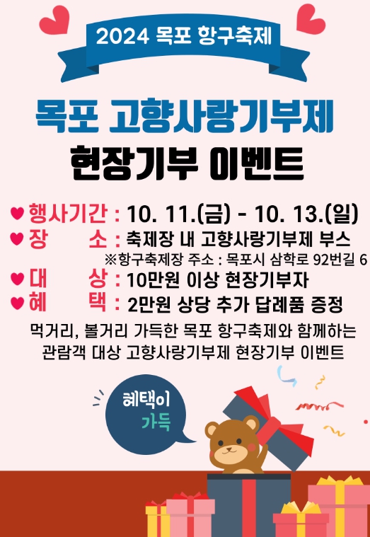![]() 목포시, 목포항구축제와 함께하는 고향사랑기부제 참여 이벤트 |