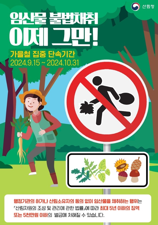 주요 단속 대상은 능이를 포함한 버섯류와 밤 등 임산물로, 산림 소유자 동의 없이 이를 채취하는 행위는 불법으로 간주되어 엄격히 처벌될 예정이다.
