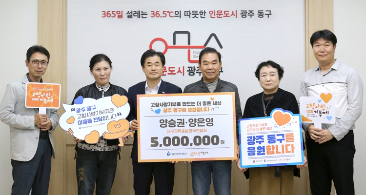 임택 동구청장은 “광주 동구를 잊지 않고 고향사랑을 실천해 주신 양승권 회장과 양은영 씨에게 깊은 감사를 드린다”면서 “기부해주신 기부금은 사회적 취약계층 지원, 주민의 복리증진 등을 위해 사용하겠다”고 말했다.