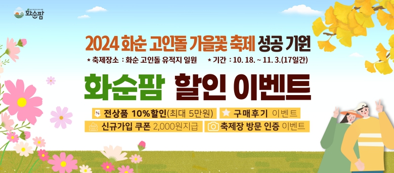 ![]() (화순팜 고인돌 가을꽃 축제 성공 기원 이벤트) : 이벤트 배너 |
