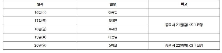 플레이오프가 4차전 이내에 종료될 시 한국시리즈 1차전은 예정대로 21일(월)에 진행되며, 20일(일) 플레이오프 5차전이 진행될 시 21일(월)은 이동일, 한국시리즈 1차전은 22일(화)에 진행된다.