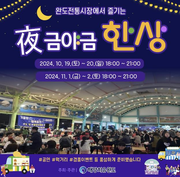 ![]() 완도전통시장서 '야(夜)금야금 주말 야시장' 열립니다! |