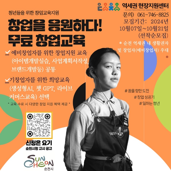 ![]() 순천시, 「역세권 로컬 창업 DIY 워크숍」 교육생 모집 |