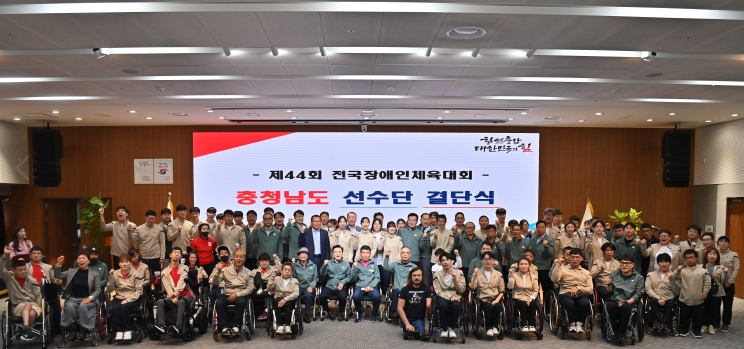 김태흠 지사는 15일 도청 대회의실에서 개최한 도 대표 선수단 결단식에 참석해 선수단을 격려하고 응원을 전했다.
