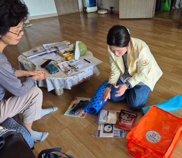 ![]() 강진군 치매안심센터에서 강진읍 목리마을을 방문하여 주거안전키트를 전달하고 있다. |