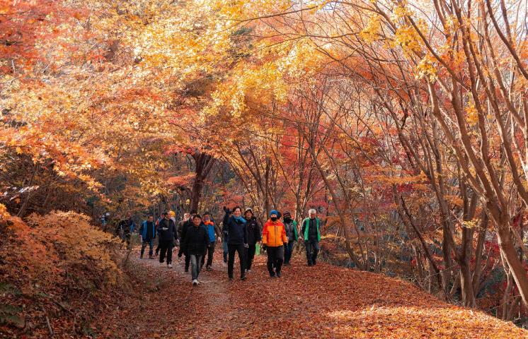 가을에 천연림과 단풍나무가 터널을 이뤄 울긋불긋 장관을 이루고, 등반객에게 산림욕까지 선사하는 1석 2조의 즐거움이 있다.