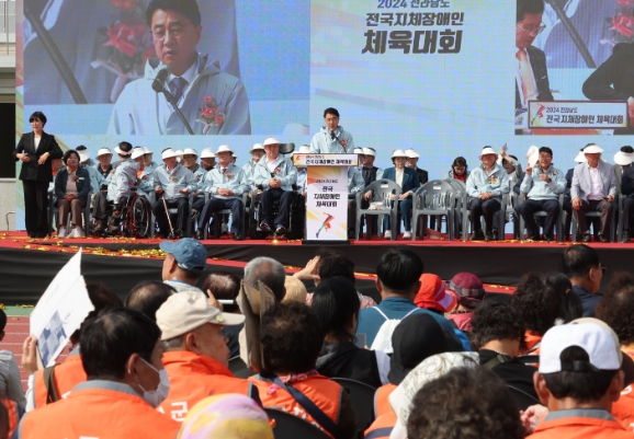 전국 17개 시도에서 6,000여 명이 참여한 이번 전국지체장애인 체육대회에는 기수단 입장에 이어 유공자 표창, 선수 선서, 기념촬영 순으로 진행됐고 김영록 지사와 전남도의회 박문옥 의회운영위원장 등이 함께 참석해 대회를 축하했다.