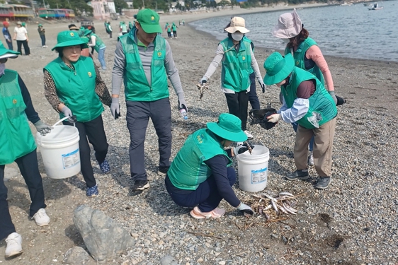 여수시 새마을부녀회 회원 35명은 지난 16일 만성리 검은모래 해변에서 해안가에 떠밀려온 정어리 떼 사체와 스티로폼, 갈대 등 각종 해양쓰레기를 집중 수거했다.