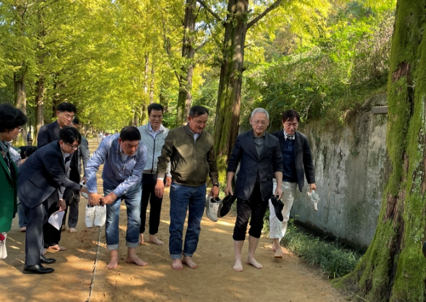 ![]() 유인촌 장관 메타세콰이어길 맨발걷기 |