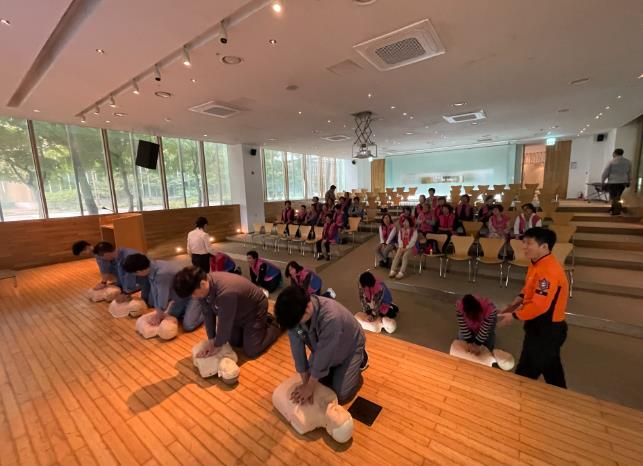 특히 교육의 실효성을 높이기 위해 마네킹과 하임리히 조끼, 소화기, 감지기 등을 교보재로 활용하며 실습을 실시 했다.