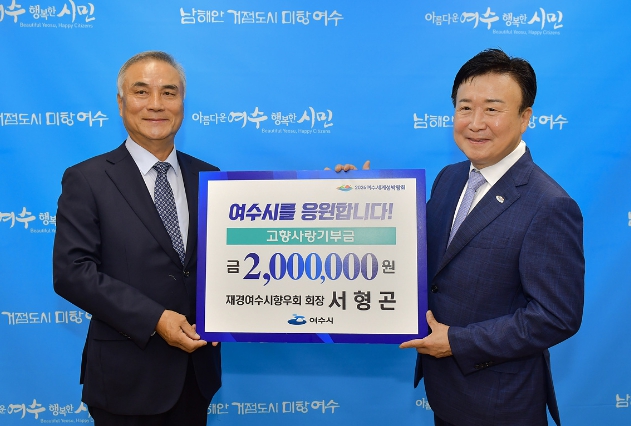 ![]() 서형곤 재경여수시향우회장이 여수시에 고향사랑기부금 200만 원을 전달했다. |