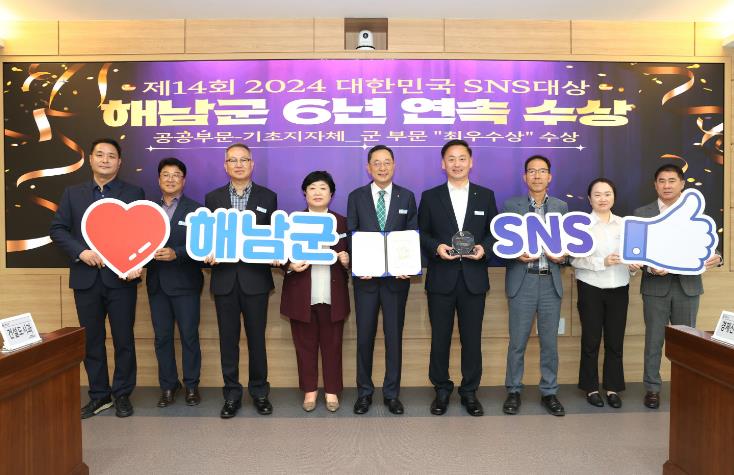 군 관계자는“해남군이 6년 연속 대한민국 SNS 대상을 수상하게 되어 매우 기쁘고 영광스럽다”며“군민 여러분의 관심과 성원이 있었기에 가능한 성과로, 앞으로도 해남의 자랑스러운 농수산물과 아름다운 관광지를 더 많은 이들에게 알릴 수 있도록 유익하고 다양한 콘텐츠를 선보이겠다” 고 전했다.