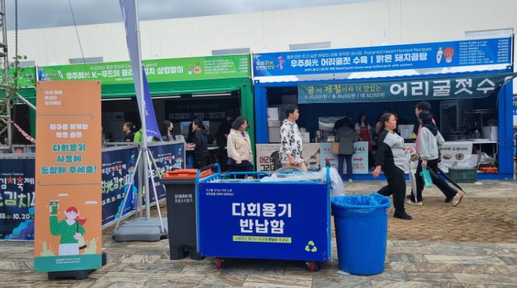 방문객들은 다회용기에 담긴 음식을 받아 식사한 뒤에 축제 현장에 설치된 반납 부스에 되돌려주면 된다.
