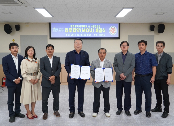 ![]() 18일 광주광역시체육회관 2층 중회의실에서 업무협약을 체결하고 있다. |