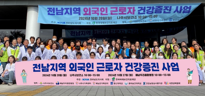 전남도와 전남도의사회, 동신대학교 간호학과, 건강보험심사평가원, 대한결핵협회, 나주시 가족센터 등 민·관·학이 협력한 가운데 간호대 학생들과 유학생, 통역사 등 70여 명이 봉사활동에 참여했다.