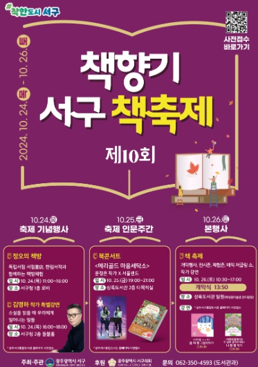 한미 도서관과장은 “작가와의 만남 확대, 쉼터 공간 확충, 청소년 프로그램 등 지난해 책축제 참가자들의 의견을 반영해 올해 축제를 보다 풍성하게 준비했다”며 “책을 좋아하고 가을날 야외에서 여가를 즐기고 싶은 시민 모두를 초대한다”고 말했다.