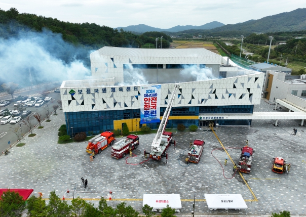 ![]() 보성군, ‘2024년 재난대응 안전한국훈련’ 실시_다중 밀집 시설의 대형 화재 발생에 대비해 훈련 장소인 보성국민체육센터를 모의 진화하고 있다. |
