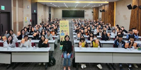 최원형 작가는 북콘서트에서 저서 ‘왜요, 기후가 어떤데요?’ 관련 퀴즈 풀기(미니 골든벨), 기후 위기시대에 청소년이 가져야 할 태도와 일상에서 실천할 수 있는 환경보호 방법 등을 강의했다.