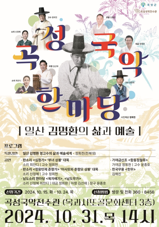 ![]() 곡성군,‘일산 김명환의 삶과 예술’국악 한마당 |