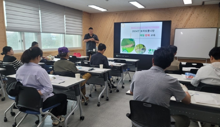 이번 교육은 토마토 생리장해, 병해충 관리 및 스마트팜 데이터 장비를 활용한 시설작물 재배관리요령 등을 다루었다.