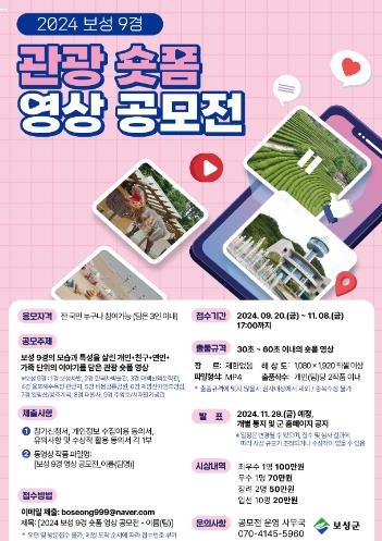 ![]() 보성군, ‘보성 9경 관광 숏폼 영상 공모전’ 개최 |