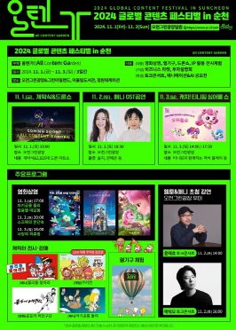 시는 여타 다른 콘텐츠 행사와는 달리 실내에서 벗어나 푸른 정원으로 뛰쳐나온 애니메이션, 웹툰, 캐릭터 등 다양한 콘텐츠를 만끽할 수 있도록 페스티벌 준비에 총력을 다할 계획이다.