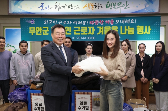 행사에서 김산 군수는 직원들이 기부한 겨울옷을 외국인 계절근로자에 전달하며 따뜻한 격려의 말을 전했고, 부서별로 별도 기부된 옷은 전남노동권익센터에 전달할 예정이다.
