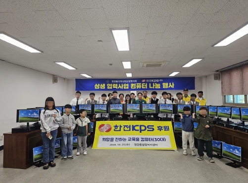 ![]() 한전KPS가 취약계층 학생들을 위해 나주시 영강동에 교육용 컴퓨터 30대를 지원했다. |