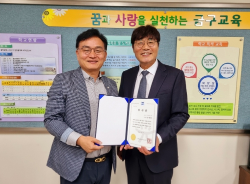 이번 감사장은 공 의원이 평소 의정활동을 통해 교육에 대한 깊은 이해와 열의로 학교 여건 개선 및 교육 발전을 위해 노력한 것에 대한 감사의 표시로 수여됐다.