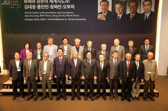 ![]() 지난 22일, 김대중 대통령 탄생 100주년 기념 국제학술회의 참석자들이 기념 촬영을 하고 있다. |