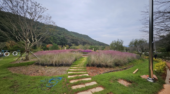 ![]() 보은산 V랜드 공원이 가을을 맞이해 핑크뮬리와 아스타 등 가을꽃이 피어있다. |