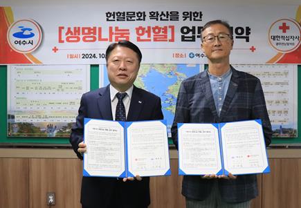 이날 신준섭 보건소장과 김동수 대한적십자사 광주전남혈액원장 등 9명이 참석한 가운데 ▲생애 첫 헌혈자 시 지원 여수사랑상품권 지급 ▲연 2회에서 4회 정기적인 헌혈 운동 동참 등을 내용으로 하는 협약을 체결하며 헌혈문화 확산에 대한 공감대를 모았다.