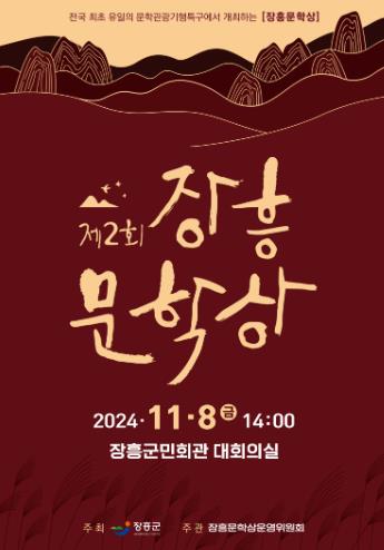 장흥문학상 시상식은 오는 11월 8일 장흥군민회관에서 개최할 예정이며, 수상자에게는 상패와 상금 5천만 원이 수여된다.