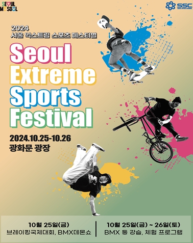 올해 처음 개최되는 ‘2024 서울 익스트림스포츠 페스티벌’은 젊은 세대를 중심으로 인기를 얻고 있는 브레이킹·스케이트보드·BMX 등의 익스트림스포츠 이색 종목을 중심으로 진행되며, 도심형 스포츠에 관심 있는 국내외 선수와 시민들이 한자리에 모여 기술을 겨루고 새로운 스포츠 문화에 대해 소통할 수 있는 특별한 기회를 제공한다.
