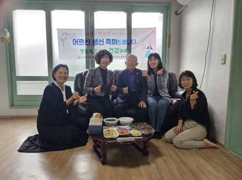 이번 10월 생신을 맞이한 어르신 2가구를 방문하여 정성껏 끓인 미역국과 삼색 나물, 생선구이 등 한 상 가득 푸짐하게 음식들을 대접하고 건강 및 생활실태를 살폈다.
