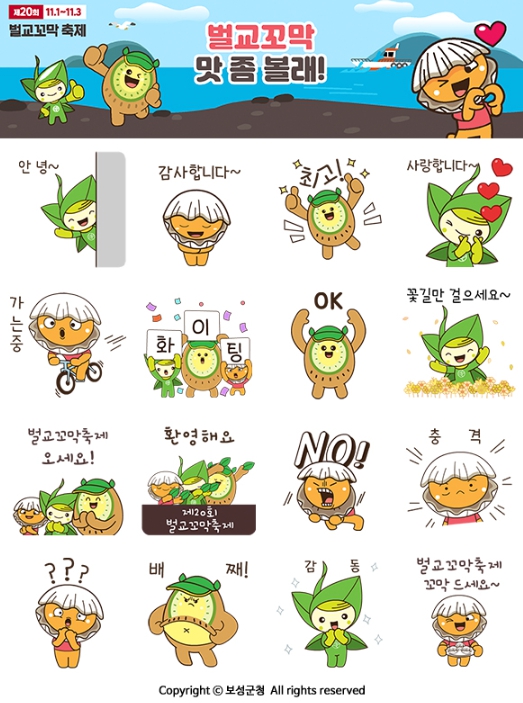 ![]() 보성군, 제20회 벌교꼬막축제 기념 이모티콘 배포 이벤트_ 이모티콘 시안 사진 |