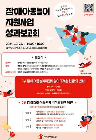 세이브더칠드런이 주최한 성과보고회는 2020년부터 5개년간 추진한 장애아동놀이지원사업의 성과를 공유하고, 장애아동의 놀권리 보장 방향을 논의하기 위해 마련됐다.