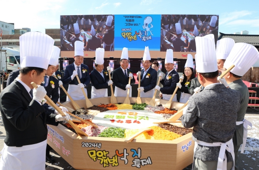 개막선언 직후에는 낙지비빔밥 100인분 만들기 퍼포먼스를 진행하고 관광객에게 나눠주며 무안낙지의 맛과 우수성을 알렸다.