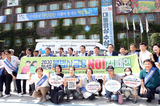 문인 북구청장은 “장기간 지속되고 있는 경기침체 등으로 저신용자들은 불법사금융 유혹에 빠지기 쉽다”며 “금융 기관 대출이 어려운 주민들께서는 서민금융진흥원을 통해 정책금융지원제도를 적극 활용하여 불법사금융 피해를 예방하길 바란다”고 말했다.