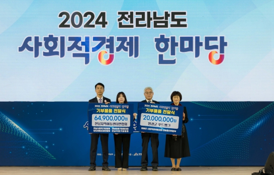 한편, 사회적경제 기부식에서 영광군사회적경제기업협의회에서는 한수원㈜ 한빛원자력본부와 연대하여 2,000만 원 상당의 물품을 영광군 푸드뱅크에 전달했고, 전남사회적기업․마을기업․남도협동조합․자활기업협회 등 4개 단체에서는 6,490만 원 상당의 물품을 전남지역아동센터연합회에 전달하여 사회적경제 가치를 실현하는 뜻깊은 행사의 전통을 이어갔다.