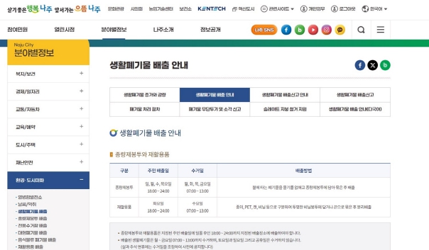 ![]() 나주시가 생활 폐기물 처리와 분리배출 활성화를 위해 도시미화 분야 누리집을 개편했다. |