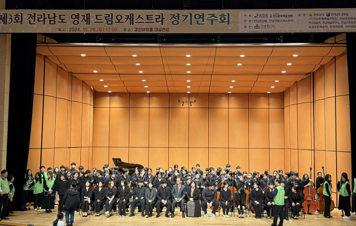 이번 연주회에서는 광주광역시를 포함한 전라남도 19개 시·군에서 선발된 대표 청소년 단원들의 공연과 2023 전남음악콩쿠르 ‘대상전’에서 전체 대상 수상자 황은현 바이올리니스트, 피어클랑 현악합주단 및 강진 영재 현악앙상블의 특별공연으로 더욱 풍성한 무대를 선보였다.